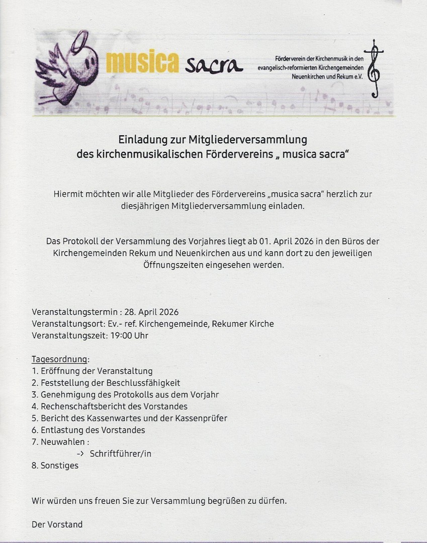 Der kirchenmusikalische Förderverein Musica Sacra ist stolz und dankbar, solch einen tollen Kinderchor unterstützen zu dürfen, indem Hauke Scholten für die Chorstunden von uns bezahlt wird und so für die Kirchengemeinden Rekum und Neuenkirchen der musikalische Nachwuchs mit Spaß und Freude dabei ist.